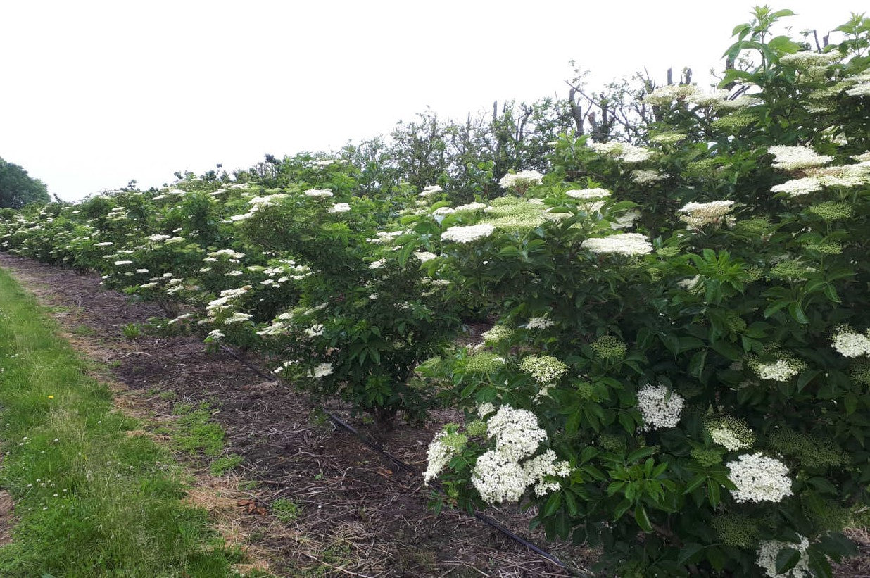Vi odlar två typer av hyllor på fältet. En vanlig vit hylla och en röd hylla. Idag används blommorna till vår fläderlikör.